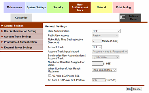 Web Connection - [User Auth/Account Track] - [General Settings]