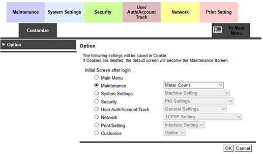 Set the default screen displayed after logging in to administrator mode.