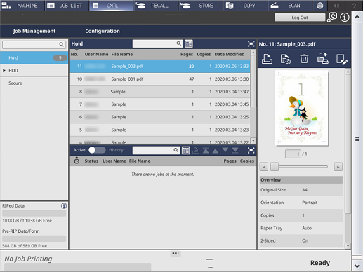 AccurioPro Print Manager can be operated from the computer or the Touch panel of this system.