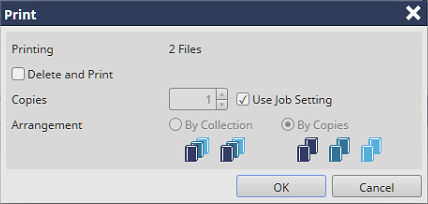 If multiple jobs are selected, the specified number of copies of each job are printed. To print the same number of copies of all jobs, clear the [Use Job Setting] check box.