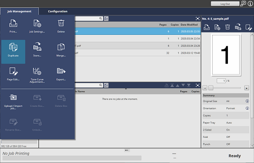 Screen access | AccurioPro Print Manager - Select a job. - [Job Management] - [Duplicate] | ||
