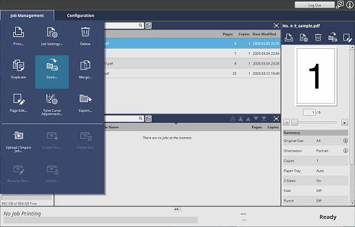 AccurioPro Print Manager - Select a job, and right-click. - [Store...] | |||