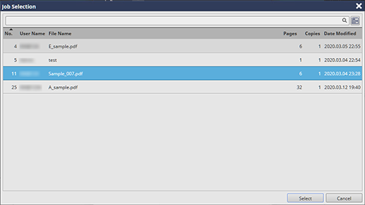 Touch panel - [CNTL] - Select a job. - [Job Management] - [Merge...] | |||