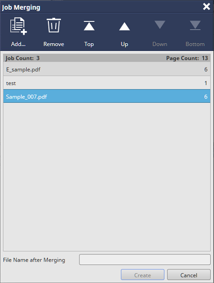 The job is added to the [Job Merging] screen.