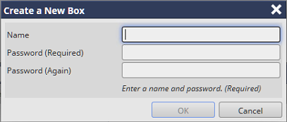HDD box: [Name] can be entered using up to 20 single-byte characters (10 double-byte characters). [Password] can be entered using up to 8 single-byte characters. If a password is not set, a box without password authentication will be created.