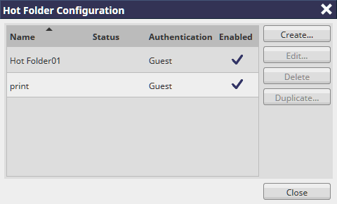 Screen access | AccurioPro Print Manager - [Configuration] - [Hot Folder Configuration...] | |||