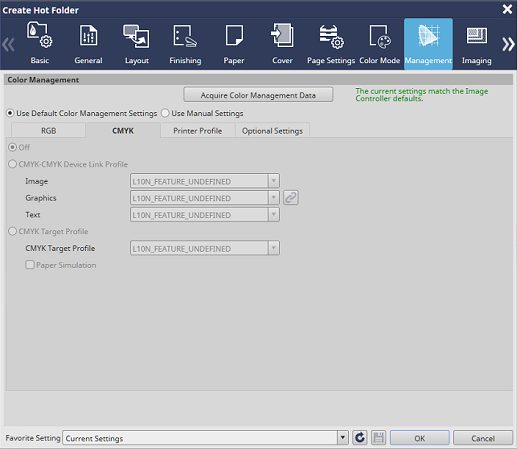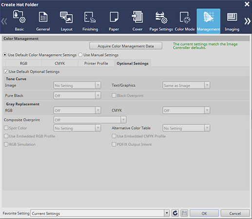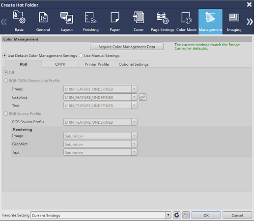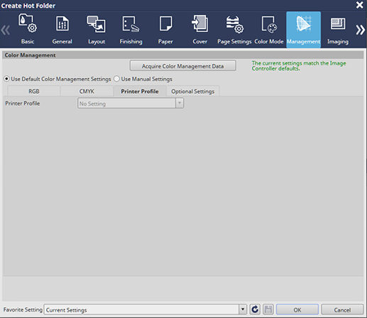 AccurioPro Print Manager - [Configuration] - [Hot Folder Configuration...] - Double-click a hot folder - [Management]
