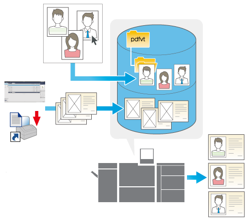 The PDF/VT-2 variable printing function only manages a part of a document using an external file, and combines such parts to print out.