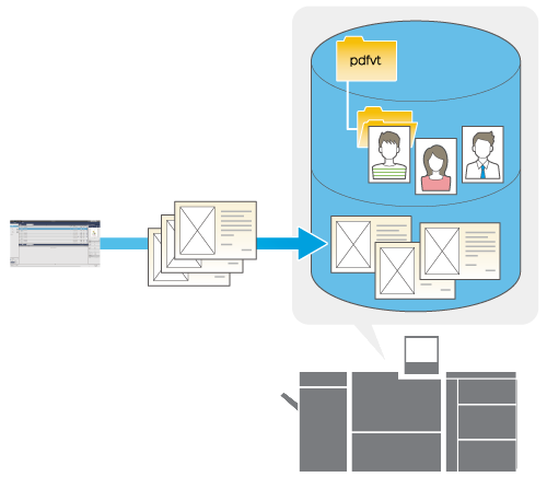 Upload the PDF/VT-2 file on the computer to a hold job, secure job, or HDD job using AccurioPro Print Manager.