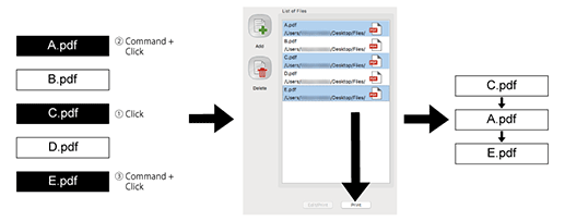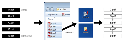 When using a hot folder or desktop icon: Files are output sequentially from the top file.