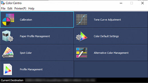 [Calibration] | Displays the [Calibration Manager] screen. This function enhances the accuracy and stability of color output. |