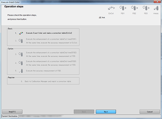 The [Execute Exact Color] wizard starts, and the [Operation steps] dialog box is displayed.