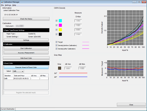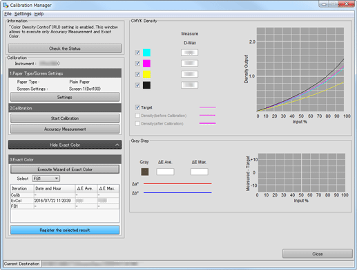 The Exact Color adjustment performed until that time and the [Accuracy Measurement] result are reflected on the [Calibration Manager] screen.