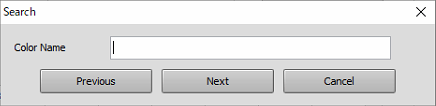 [Previous] | Jumps to the closest color after the currently selected color among the corresponding search results. If the matching color is not found up to the end of the target table, the system moves to the next table to continue searching. If you click [Previous] at the end, searching is repeated from the top. | ||