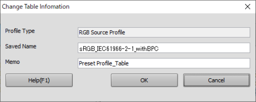Color Centro - [Profile Management] - [RGB Source Profile] - Select a folder. - [File] - [Change Table Information ...] | |||
