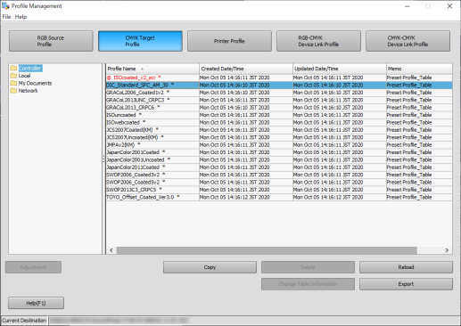 [CMYK Target Profile] is copied to [Controller].