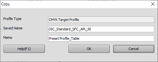 [Saved Name] | Enter the storage name. Up to 31 single-byte or double-byte characters can be entered. The same name as the registered [CMYK Target Profile] cannot be specified. | ||