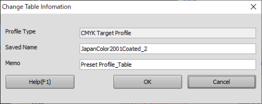 Color Centro - [Profile Management] - [CMYK Target Profile] - Select a folder. - [File] - [Change Table Information ...] | |||