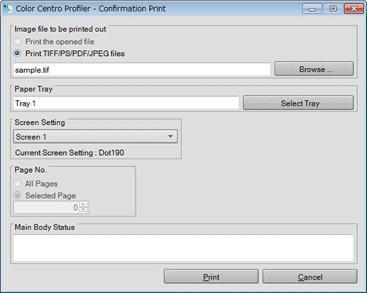 Click [Select Tray] to display the screen, and select the target tray in [Confirmation Print].