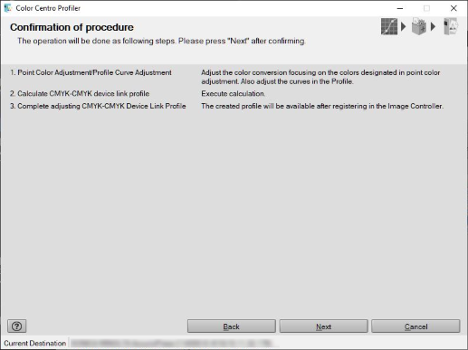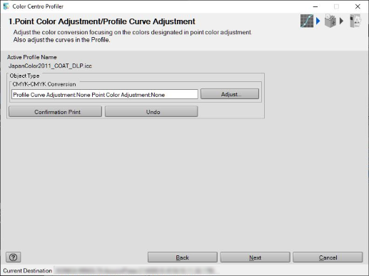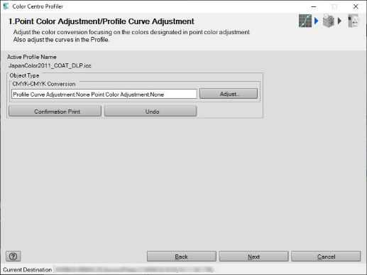 Clicking [Adjustment] displays the wizard. Follow the on-screen instructions to edit [CMYK-CMYK Device Link Profile].