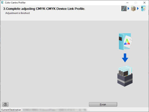 When calculation is completed, the [Complete adjusting CMYK-CMYK Device Link Profile] screen is displayed.