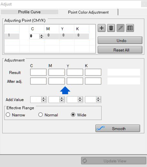 [Adjustment] | Executes [Point Color Adjustment/Profile Curve Adjustment]. To make individual adjustments, switch the [Profile Curve] and [Point Color Adjustment] tabs. | |