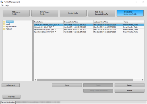 [CMYK-CMYK Device Link Profile] is copied to [Controller].