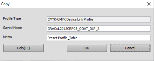 The same name as the registered [CMYK-CMYK Device Link Profile] cannot be specified.