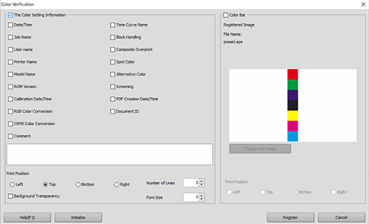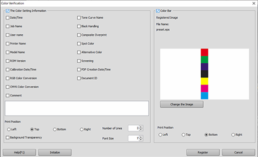 [Register] | Registers the [Color Verification ...] setting. | ||
