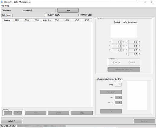You can create a new alternative color table, check the registered contents, and newly create or edit an alternative color.