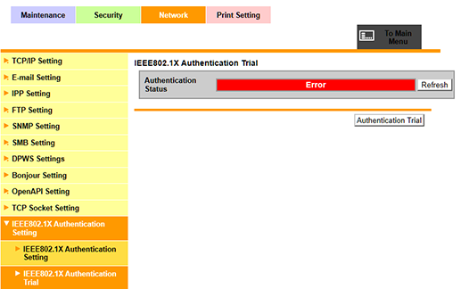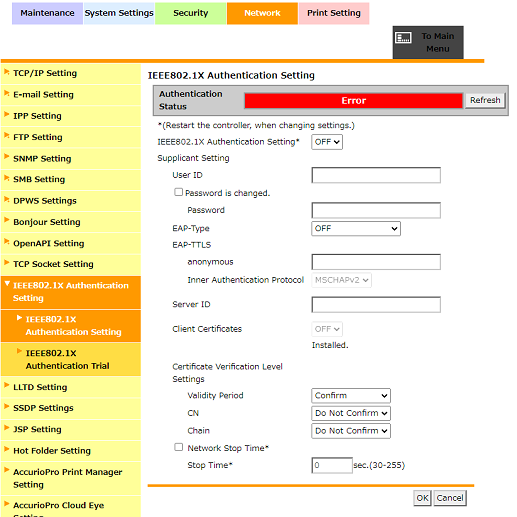 Web Connection - [Network] - [IEEE802.1X Authentication Setting]