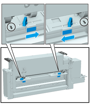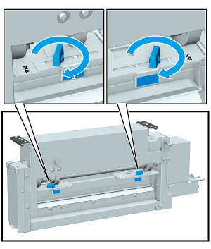 If the paper weight is below 350 g/m2 / 93 lb Bond, return the adjustment brackets to the position at which you can see the "1*" and "1)" marks.