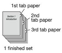 Example: Insert three sheets of tab paper into one print set