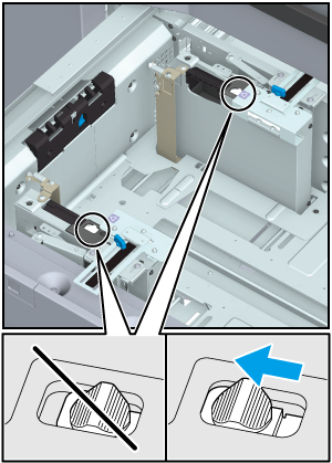 Loosen the Side guide lock knobs of Side guides on the tray.