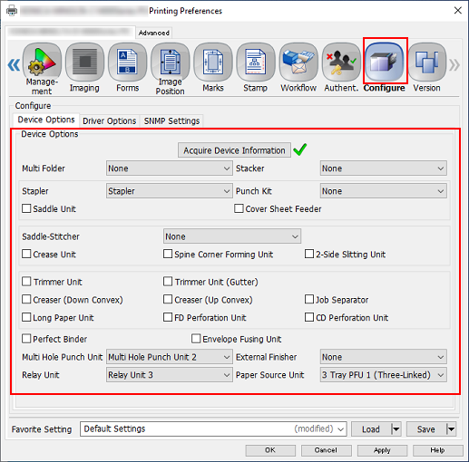 to the right of [Acquire Device Information]. If it is not there, click [Acquire Device Information] and acquire mounting option information.