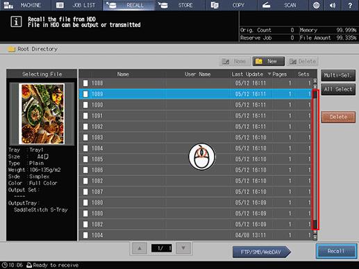 You can move the cursor using the mouse wheel on the list of the [RECALL] screen.