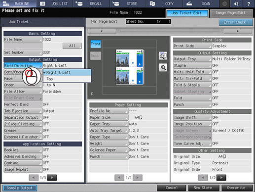 If you press [Bind Direction] in [Output Setting], you should be able to select [Right&Left] or [Top] from the menu list.