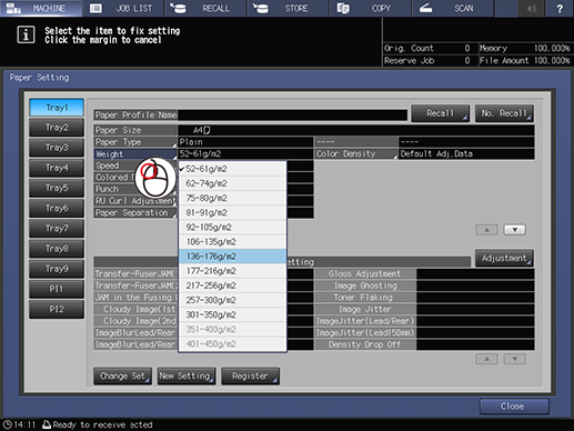 Press [Booklet] in [Application Setting] and then press [ChangePageSpace]. Rotate the wheel up and the counter after count up.