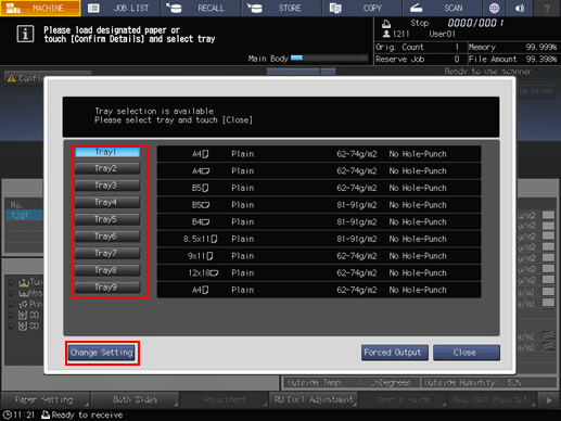 - The tray selected for forced output is used as a paper feed tray until that job ends.