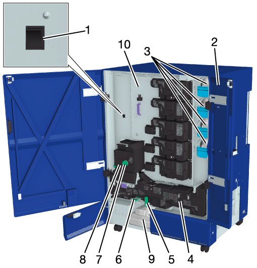 1 | Main power switch | The customer engineer switches OFF/ON. Do not turn off under normal circumstances. |