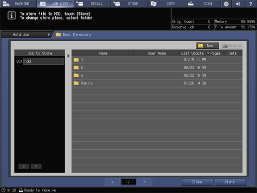 [New] | Creates a folder or box to store hold jobs on the HDD. For details, refer to [New]. | ||