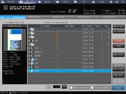 [Last Update] | Displays the date and time when the job was stored on the HDD. | ||