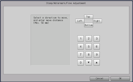 Setting items | [Fine Adjustment] | Used to enter numeric values to adjust the print position. | |