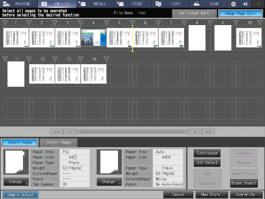 [Insert Image] | Select an image page to insert from another hold job. For details, refer to [Insert Image]. |