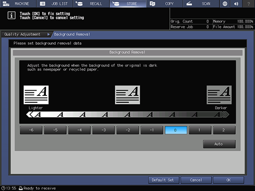 Touch panel - [STORE] - [Quality Adj.] - [Back. Removal]