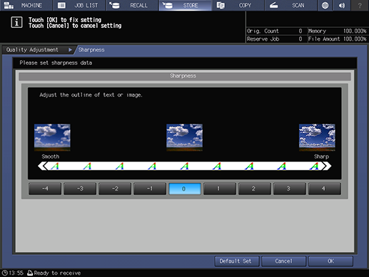Touch panel - [STORE] - [Quality Adj.] - [Sharpness]