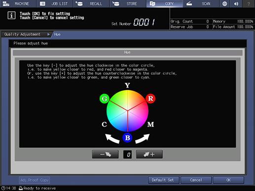 Touch panel - [COPY] - [Quality Adj.] - [Hue]