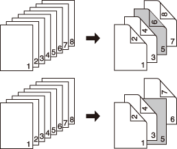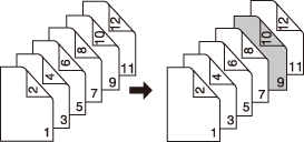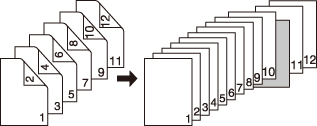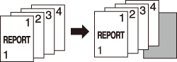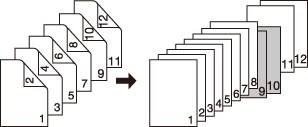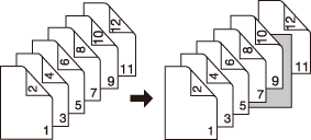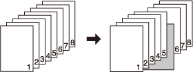 [2->1] | Blank paper is inserted after the 5th page (9th and 10th pages) of a 2-sided original was simplex-copied. Blank paper cannot be inserted after an odd-numbered copy page. ![]() |