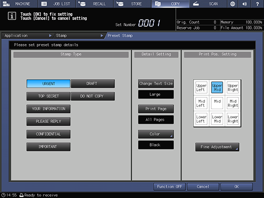 Touch panel - [COPY] - [Application] - [Stamp] - [Preset Stamp]
