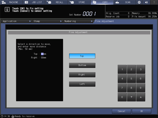 Touch panel - [SCAN] - [Scan Settings] - [Application] - [Annotation] | |||